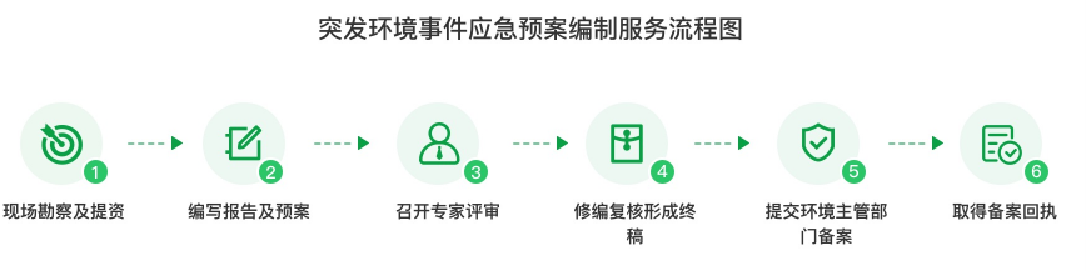企業(yè)提供基本信息》報(bào)價(jià)》接受委托》收集技術(shù)資料》現(xiàn)場(chǎng)調(diào)查》編制環(huán)境應(yīng)急預(yù)案》組織專家評(píng)審》修改完善》指導(dǎo)企業(yè)應(yīng)急預(yù)案?jìng)浒?br/>