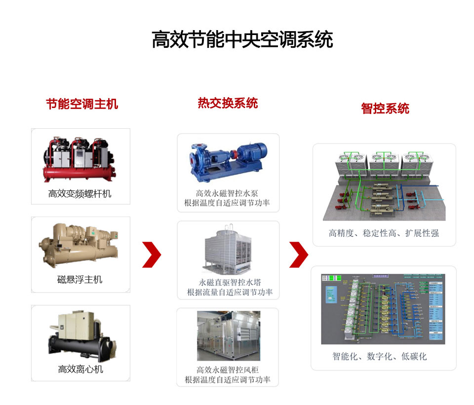針對中央空調機房系統(tǒng)和水冷柜機系統(tǒng),提出高效中央空調系統(tǒng)解決方案,專業(yè)設計,智能管控,達到高效節(jié)能效