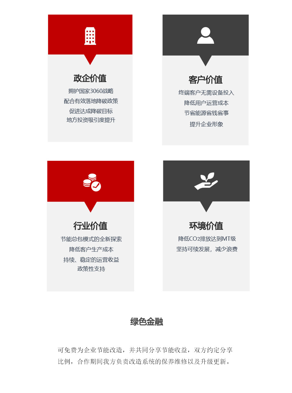 通過合同能源管理的模式或其他節(jié)能變現的方 式幫助企業(yè)實現前期零投資
